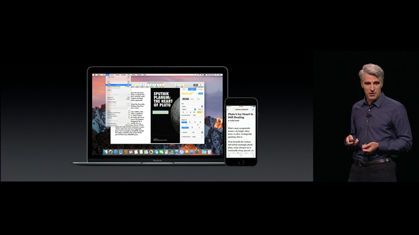 The latest OS version will be called Sierra, with a focus on continuity. For example, if you're wearing an authenticated Apple Watch, you can automatically unlock your laptop just by having that watch nearby. It's a neat little feature… Well, only if you own all the right Apple gear.